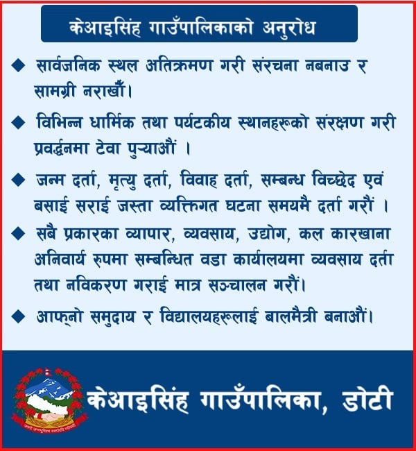 पठन संस्कृतिको विकास गर्ने उद्देश्यका साथ गाउँपालिका कक्षा ६ देखी १२ सम्म पढाइ हुने एक दर्जन विद्यालयका एक हजार तिन सय पाँच बिद्यार्थिलाई ‘बाआमा’ र सेती काली नामक पुस्तक वितरण गरिएको शिक्षा तथा खेलकुद शाखा प्रमुख चेतराज बिनाडीले जानकारी दिए । बिनाडीले भने ‘विद्यार्थीको पढ्ने बानी पनि बसोस् लेख्न पनि सिकुन् हाम्रो कला संस्कृति र सम्मान बारे पनि जानुन् भन्ने हाम्रो उद्देश्य हो ।’
