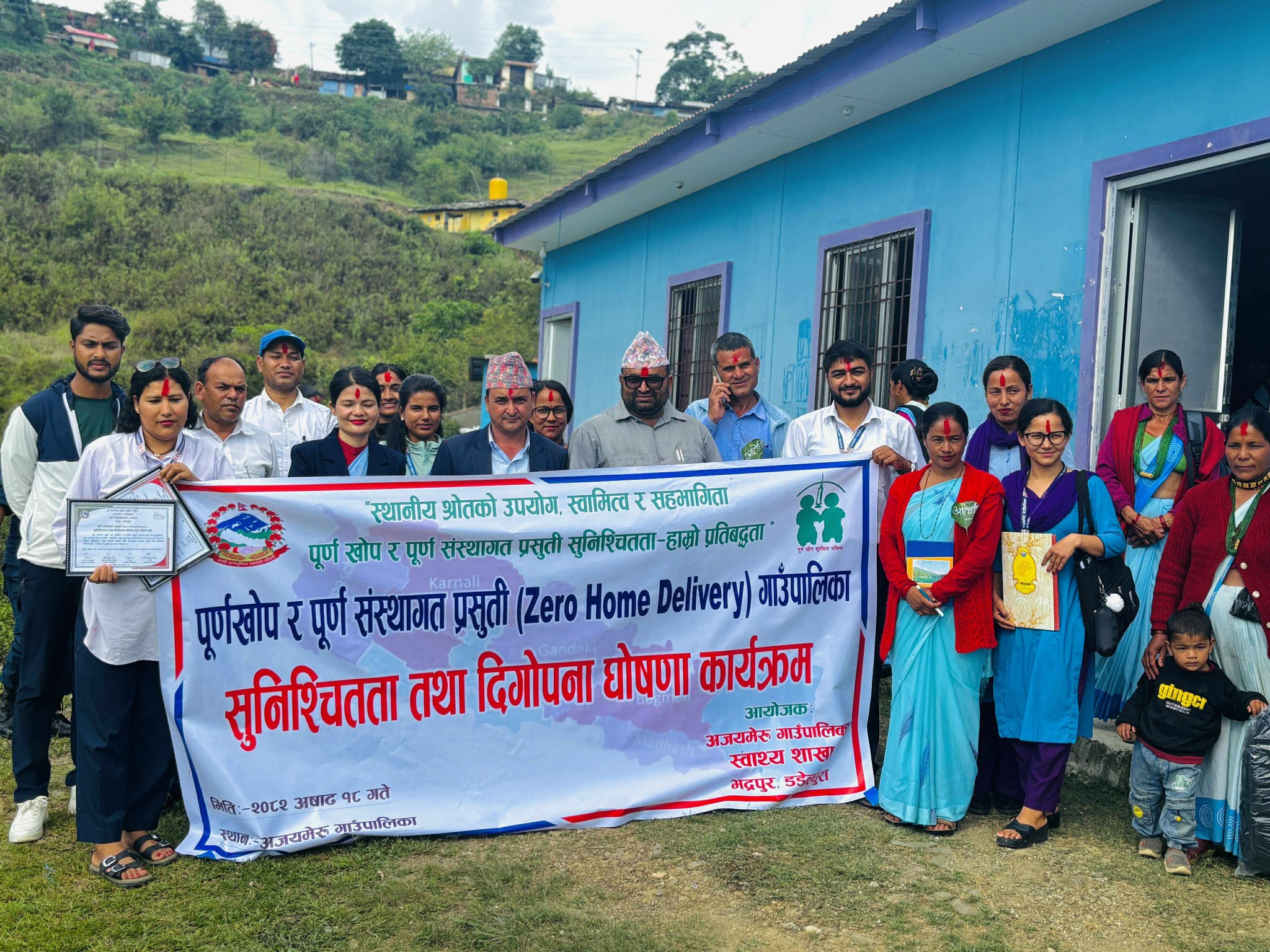 अजयमेरु गाउँपालिका सुदूरपश्चिम प्रदेशकै पहिलो पूर्ण संस्थागत प्रसूति सुनिश्चितता तथा दिगोपना पालिका घोषणा गरिएको छ।