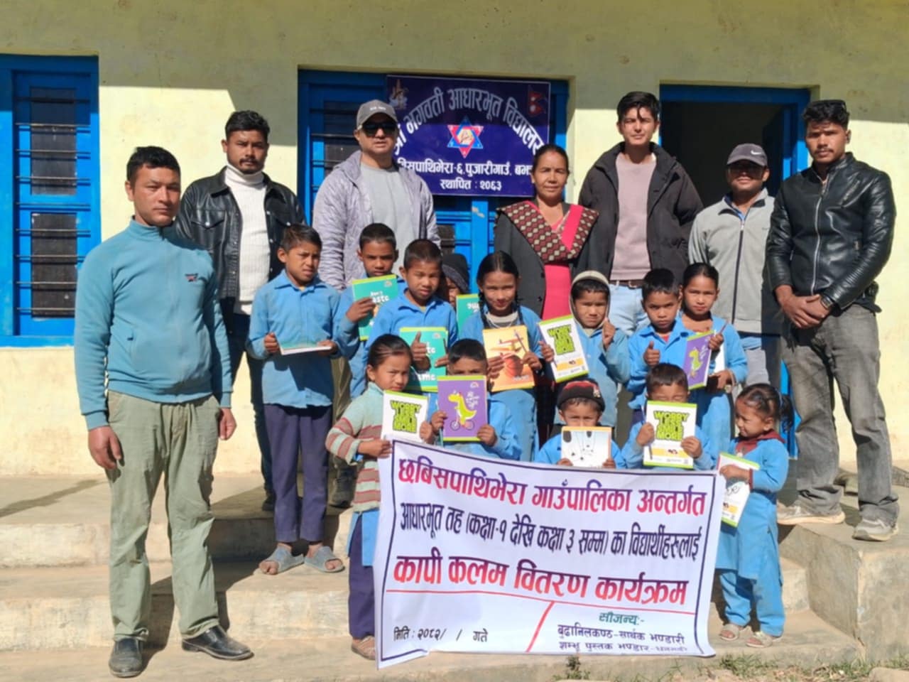 सम्बन्धित विद्यालयमा शिक्षकहरुकोे उपस्थितिमा बालबालिकालाई प्रति गोटा २ कपी र १ पेन्सिल वितरण गरेको हो । दुर्गम क्षेत्रका बालबालिकालाई पठनपाठनमा सहजताका लागि विद्यालयमा गएर सहित स्टेसनरी सामग्री सहयोग गर्दै ध्यान दिएर पढ्न सुझाव दिनुभएको छ। शैक्षिक सामाग्री पाएपछि बालबालिकाहरू खुसी भएका छन् ।