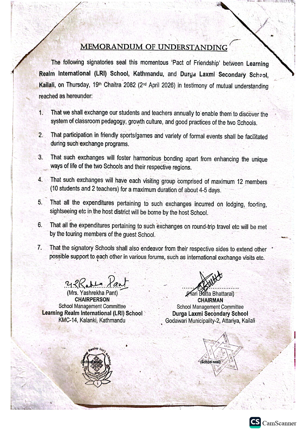 देशकै अग्रणी विद्यालय LRI र सुदूरपश्चिमको उदाउँदो शैक्षिक संस्थाबीचको यो सहकार्यलाई शिक्षा क्षेत्रका लागि उदाहरणीय कदमका रूपमा लिइएको छ ।